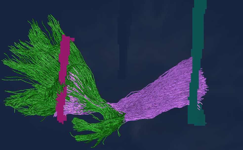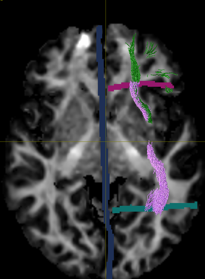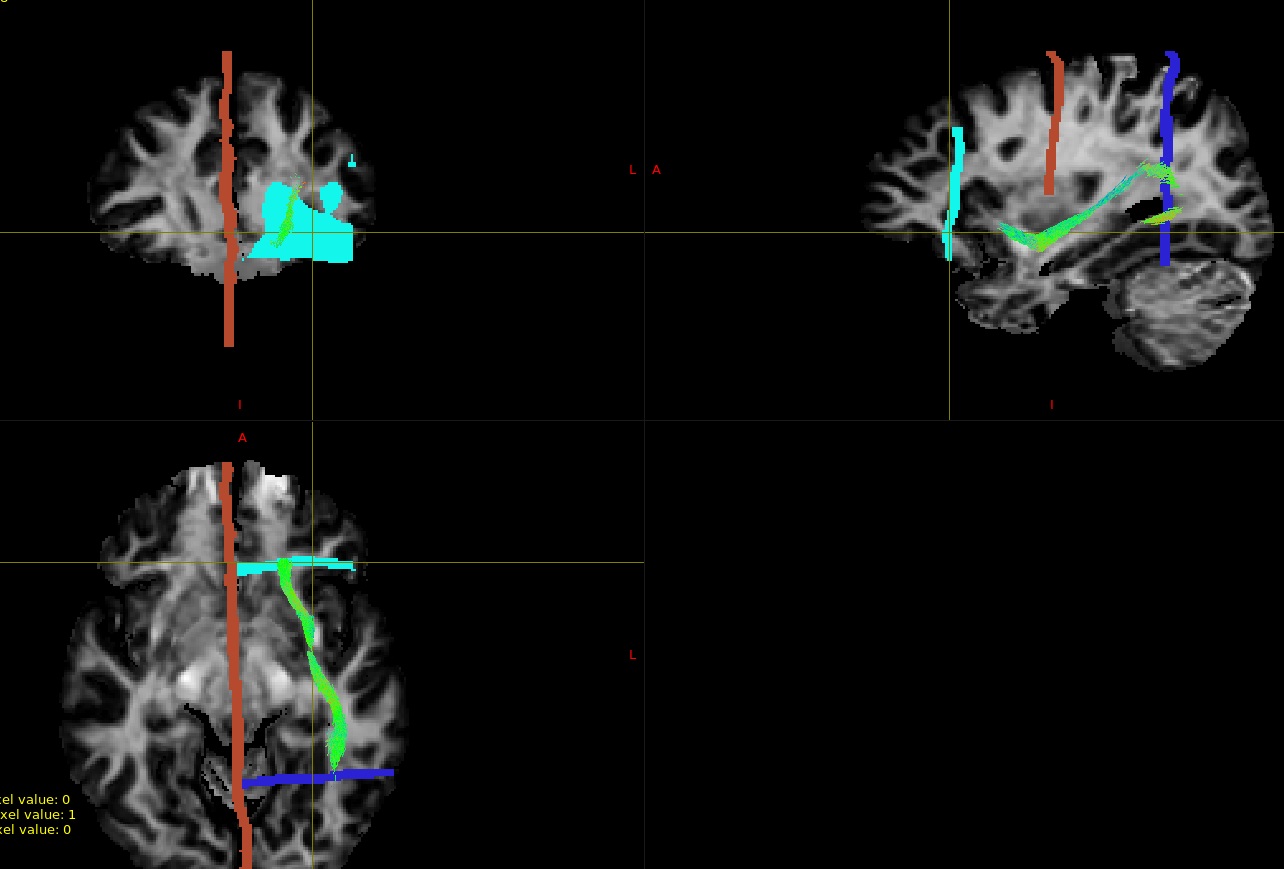 The problem: the streamlines are systematically truncated between the seed (blue) and the include ROI (cyan), even though the ROIs do not overlap or touch each other. The NOT mask (brown) is located elsewhere. Please see the attached screenshot for a visual example.